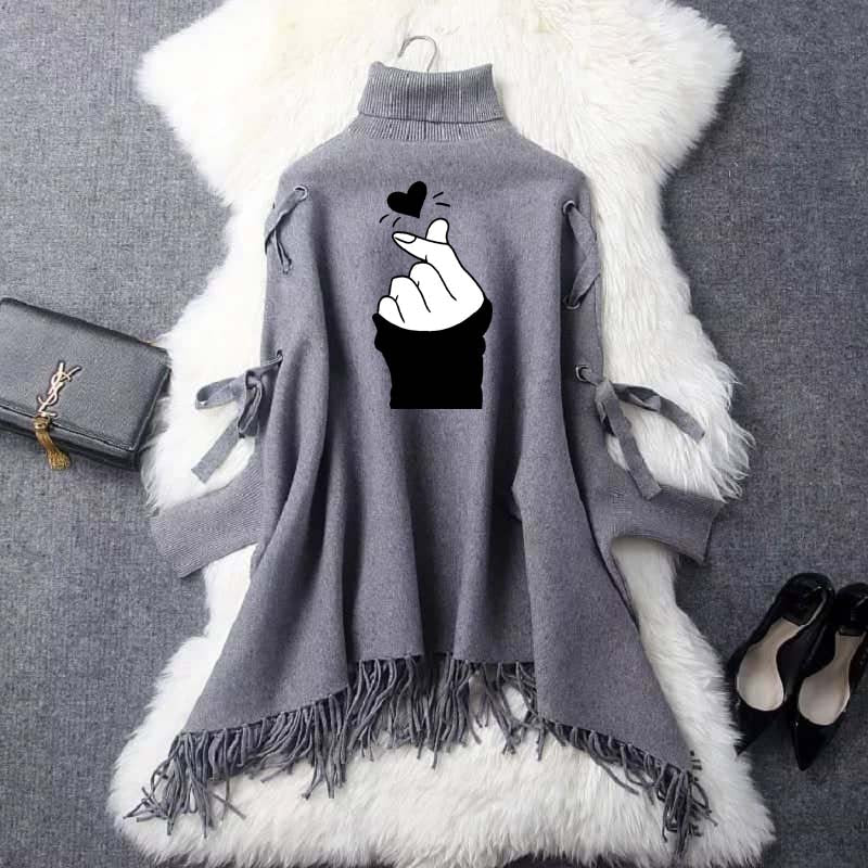 Zayra Black-White Love Eyelet Style Winter Bat-Wing Poncho.