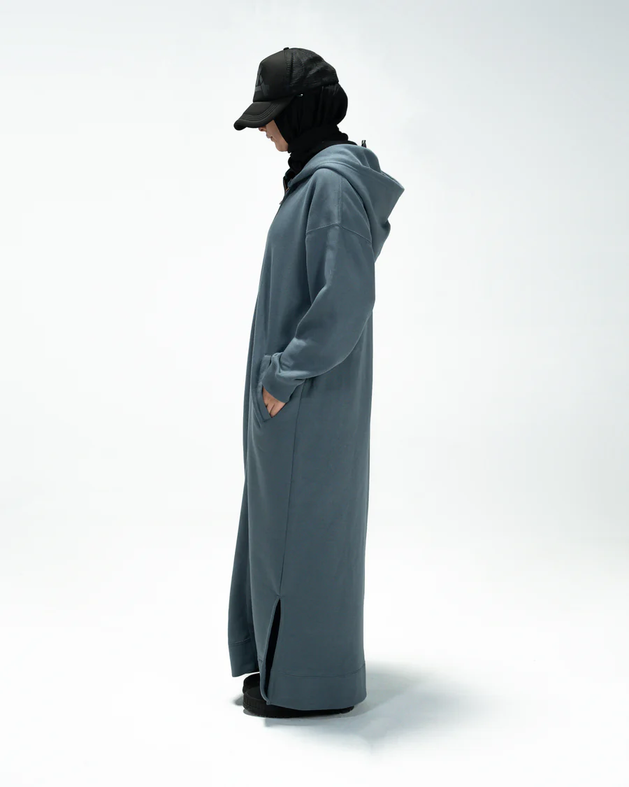 Zayra Grey Zipper Hoodie Abaya