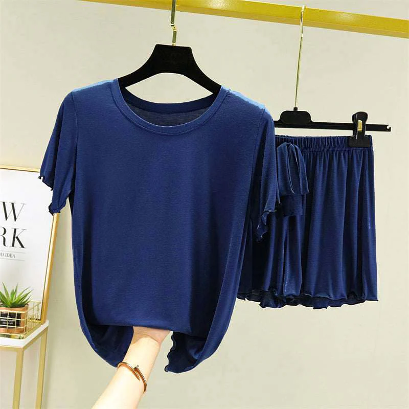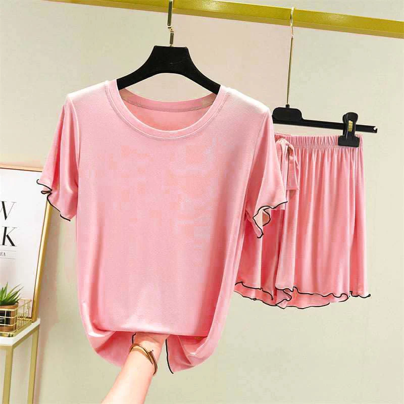 Zayra Piko Short Style 2-Pcs Summer Launge & Night Wear Suit. WLW-03 Imported Pocket Tshirt-Style 2-Pcs Silk Nightsuit. (Tshirt+Pajama).